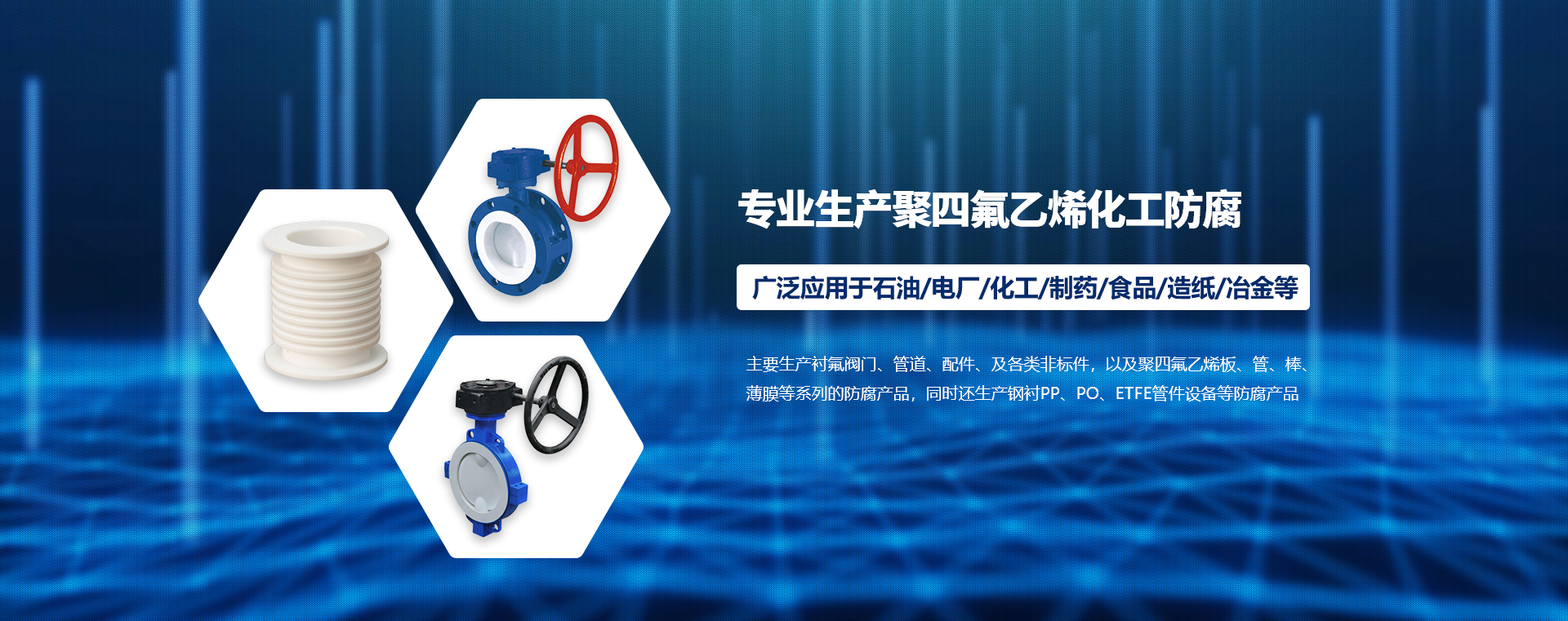 公司主要生產襯氟閥門、管道、配件、及各類非標件,以及聚四氟乙烯板、管、棒、薄膜等 系列的防腐產品,同時還生產鋼襯PP、PO、ETFE管件設備等防腐產品